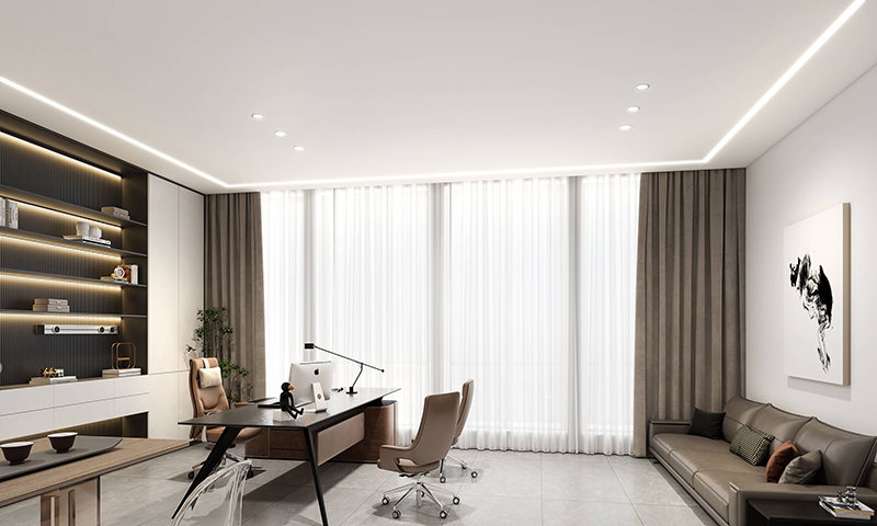 良好的照明與通風是辦公室裝修中不可忽視的環節。合理的照明設計不僅能提升室內亮度,還能減少視覺疲勞,提高工作效率。自然光是最理想的照明方式,因此應盡量引入自然光;同時,輔以適當的人工照明,以滿足不同時間段和區域的需求。通風方面,除了保持室內空氣流通外,還可考慮安裝新風系統或空氣凈化器,以改善室內空氣質量。